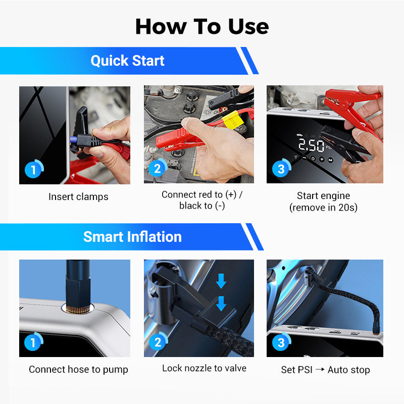 All-in-One Car Emergency Starting Power Supply & Inflatable Pump Set