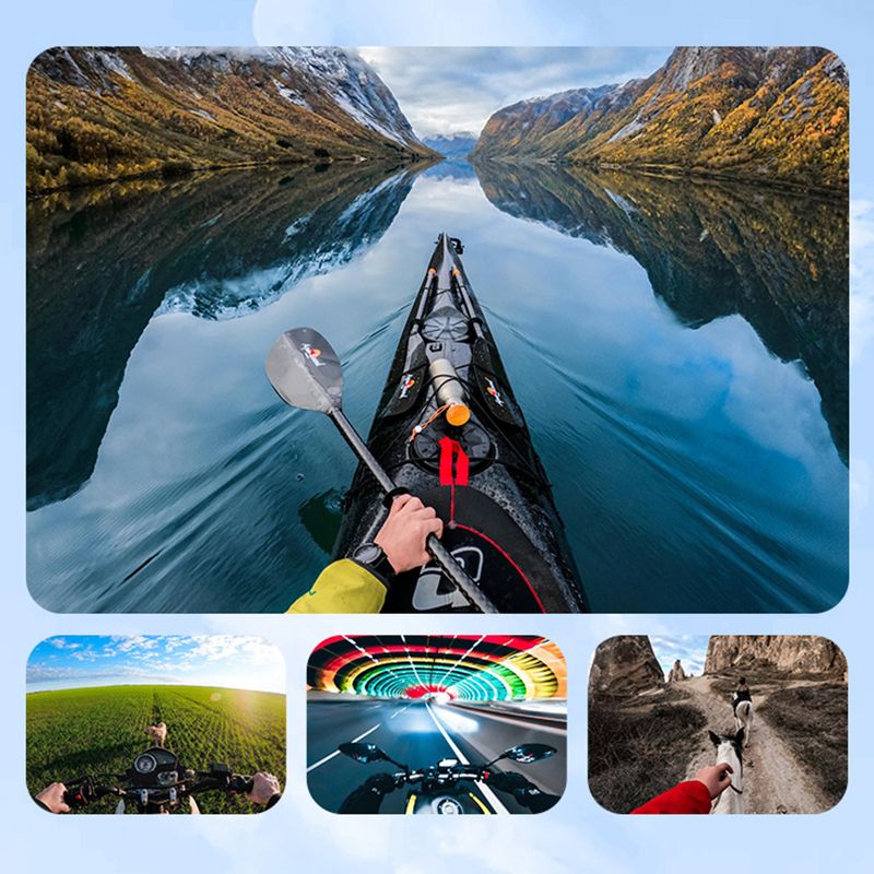 Designed for POV and VLOG shooting, the best video recording accessory. You can use it while outdoor climbing, cycling, riding (instead of using a motorcycle helmet chin mount) hiking, skiing, diving (instead of using a mouth mount or wrist strap), shopping, lure fishing, etc., and for indoor cooking, gatherings, party, playing with pet, stay with baby recording, etc.